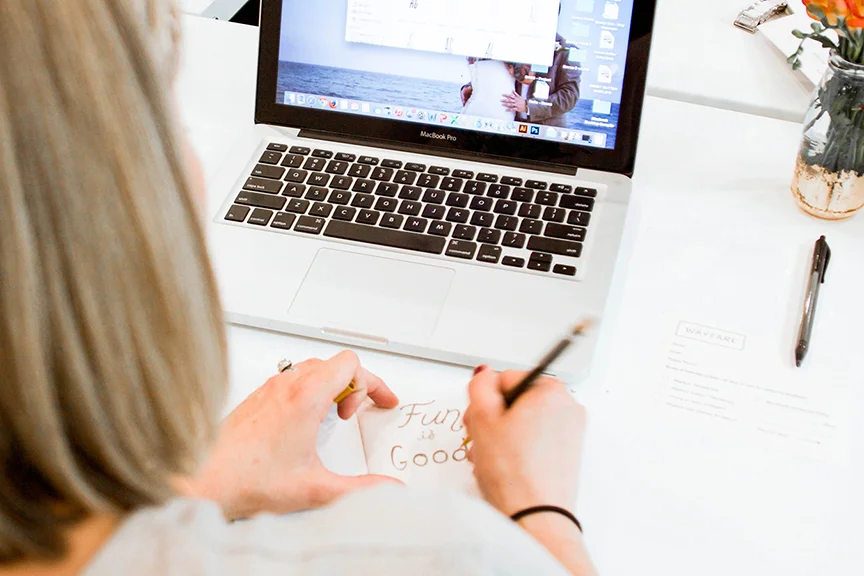 I recently put on an Intro to Graphic Design Workshop at Wayfare HQ in Costa Mesa. It's a beautiful co-work space, where during the week, people who work from home, coffee shops, or just need a unique space for a meeting, can come and rent space to work for the day. On the weekends, they host workshops that are open to the public. I was first introduced to them by taking a POPPYjack calligraphy workshop, it was so inspiring. It was a room full of people who want to learn a specific skill set. Surrounded by positive attitudes, fresh flowers and the want to try something new.